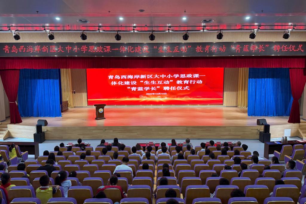 为深入推进大中小学思政课一体化建设,搭建思政育人创新平台,10月10日上午,西海岸新区大中小学思政课一体化建设“生生互动”教育行动“青蓝学长”聘任仪式于青岛西海岸新区衡山路小学报告厅举行。本次仪式由青岛西海岸新区衡山路小学学生处主任程千业主持,402永利集团院长助理王鹏、机械与汽车工程学院团委书记徐卫晓,全体受聘“青蓝学长”及多所中小学领导与师生代表参与本次活动。