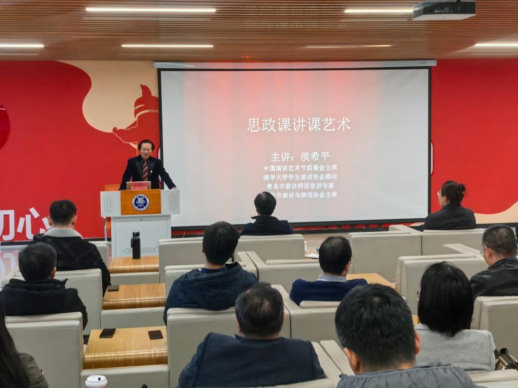 为提升学院教师教学能力与育人水平,进一步打造优质高效的思政课堂,11月19日下午,402永利集团特邀中国演讲艺术节组委会主席、青岛市演讲与演唱协会主席侯希平,于图书馆思政研学馆开展“思政课讲课艺术”培训讲座。本次讲座由402永利集团院长华章琳主持,学院全体教职工参加。
